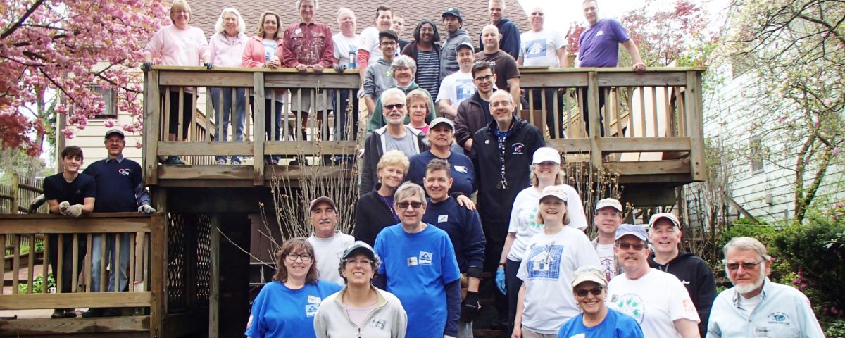 installation of five new interior doors and a new front door, a new hot water heater, kitchen cabinet repair and installation of a new kitchen faucet, light fixture replacement, electrical outlet repair, insulation installation and general decluttering. The volunteers were kept busy outside with deck repair, chimney repair, walkway repair, shutter painting, assembly of an outdoor gazebo, installation of new storm doors, replacement of fencing along the property boundary and yard cleanup.